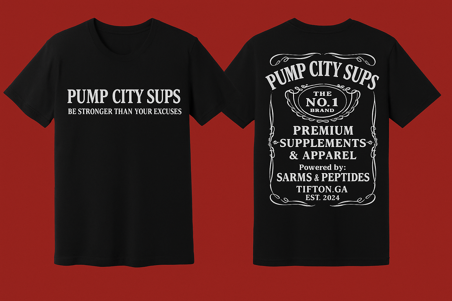 The official Pump City Sups tee is here — bold front, classic Jack-style back.